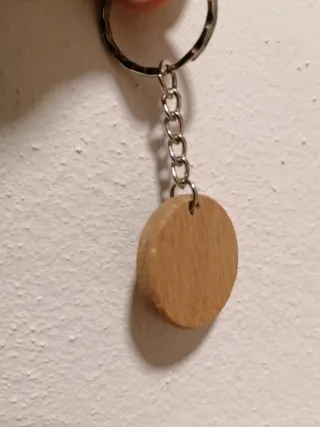 Portachiavi rotondo in legno con un simpatico disegno di un cane inciso. - Materiale: Legno - Motivo: Cane