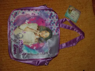 Piccola borsetta con stampa di Violetta Disney. Ideale per bambine. - Design colorato con note musicali e farfalle. - Manici in raso viola.