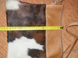 Tracolla da donna con un design unico che combina pelle e pelo. - Materiale: pelle e pelo - Colore: marrone e bianco
