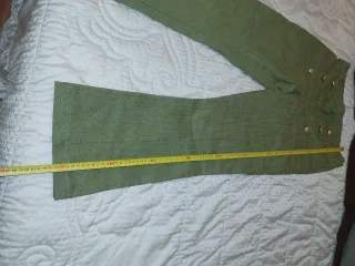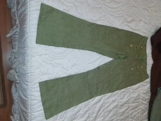 Pantaloni a zampa d'elefante con bottoni dorati. Taglia 46 italiana - Tessuto a coste. - Vita alta. - Chiusura con bottoni. - Gamba svasata.
