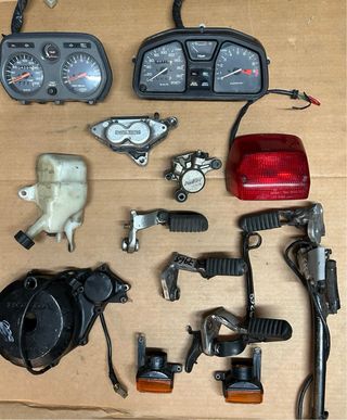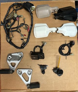 Ricambi per Honda Transalp 600. - Cablaggio motore - Paramani (beige, nero, bianchi) - Pedane pilota (sinistra e destra) - Interruttore manubrio - Serratura sella - Pompa benzina
