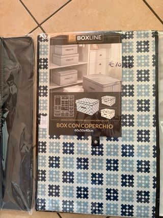 Vendo 2 pratiche scatole con coperchio ideali per organizzare e conservare abiti e biancheria in casa. Dimensioni: 60x50x40cm Vendibili anche separatamente