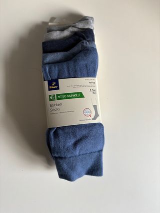 Confezione da 5 paia di calzini da uomo Tchibo. - Realizzati in cotone biologico. - Taglia 41-43 - Polsino elastico e resistente. - Colori misti: blu, grigio.