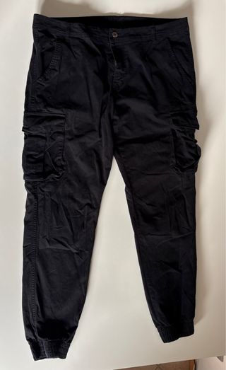 Pantaloni cargo da uomo in tessuto resistente. - Tasche laterali. - Vestibilità comoda. - Fondo gamba elasticizzato.