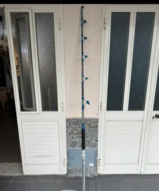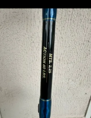 Canna da pesca per tonno, ideale per la pesca in mare. Alutecnos 80 lb più canna 80 lb - Colore blu e nero. - Manico in gomma. - Anelli rinforzati.