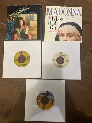 Lotto di 5 dischi in vinile 45 giri in ottime condizioni. - Flashdance... What a Feeling di Irene Cara - Who's That Girl di Madonna - Super tramp dei Supertramp - Rockets dei ROCKETS - Touch Me In The Morning