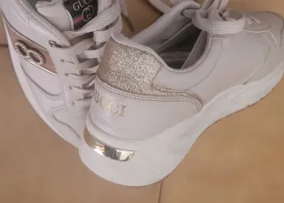 40 come nuove Scarpe Gucci da donna in taglia 40. Un modello elegante con dettagli glitter e logo dorato. - Dettagli in glitter sul tallone. - Logo Gucci dorato sul retro. - Inserti metallici dorati sul tallone e sul lato.