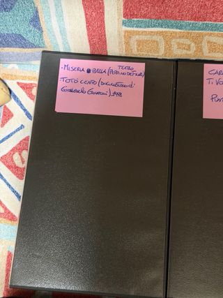 Vendo 9 Vhs con programmi tv di Totó registrati dalla rai: - Caro totó ti viglio presentare - Totó un altro pianeta - Toto 100 documentario rarissimo - Tutto totó (don giovannino, premio nobel) - I quattro Moschettieri (Film) - Toto sexy - L’uomo, la bestia e la virtú - Collage amatoriale Totó (Film e interviste) - Il vigilie ignoto (ep. Le motorizzate) - Miseria Bella (teatro con peppino de filippo)