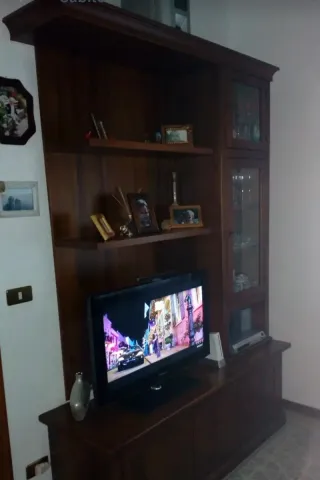 Vendo mobile soggiorno in legno massello, color marrone scuro. H227 L158 P50. Solo consegna a mano. Prezzo trattabile. - Struttura robusta e ben conservata. - Composto da libreria, vano TV e mobile con ante e vetrinetta. - Facile da montare. - Perfetto per arredare il tuo salotto.