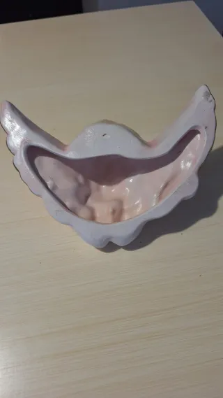 Delicato angioletto decorativo, ideale per celebrare la nascita di una bambina. Le ali sono dipinte di rosa con dettagli dorati. - Finitura in ceramica. - Dettagli in oro sulle ali e sul bordo.