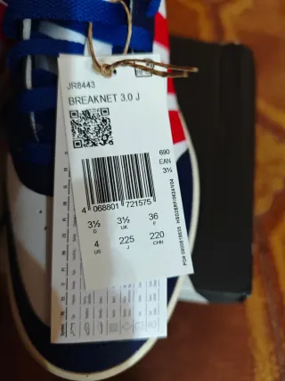 Scarpe da ginnastica Adidas nuove, perfette per un look casual. - Tomaia bianca con dettagli blu e rossi. - Lacci blu. - Logo Adidas visibile. -Taglia 36
