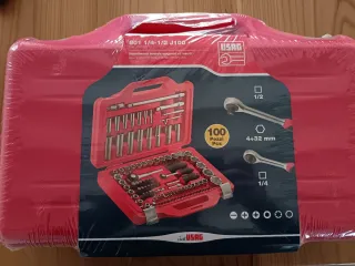 Cassetta attrezzi USAG completa di bussole esagonali e inserti. - Modello: 601 1/4-1/2 J100 - Codice: UD6010011 - 100 pezzi - Misure: 4-32 mm - Attacco 1/2 e 1/4