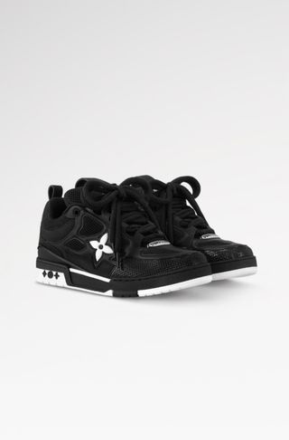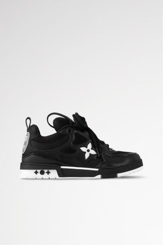 Sneakers Louis Vuitton LV Skate in colori nero e bianco. - Design iconico con fiore stilizzato. - Dettagli a contrasto sulla suola.