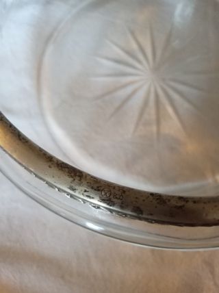 Centrotavola antico primi del '900. In cristallo molato, con bordo in argento 800.