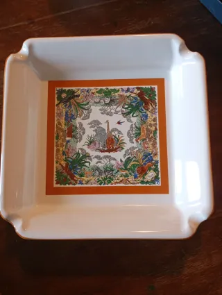 Elegante posacenere in porcellana Gucci, disegnato del rinomato artista Vittorio Accornero con il design "La Selva". Il pezzo, creato negli anni 70'- 80', presenta una scena vibrante e dettagliata della giungla. - Posacenere in porcellana. 16×16×3 cm - È un oggetto da collezione molto ricercato. - Lavorazione artigianale di alta qualità. - Regalo vintage perfetto o un'aggiunta preziosa a qualsiasi collezione Gucci.
