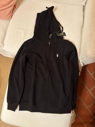 Felpa con cappuccio e zip di Polo Ralph Lauren. È una L ma veste come una M. - Logo del cavallino ricamato sul petto. - Tasche a marsupio. - Cappuccio con laccetti regolabili.