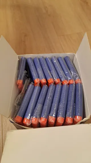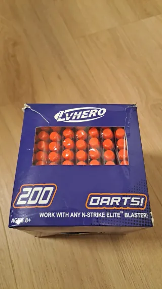 Confezione da 166 dardi (era da 200 ma sono stati usati) compatibili con i blaster N-Strike Elite. - Colore arancione e blu - Compatibili con la maggior parte dei blaster Nerf N-Strike Elite. - Età consigliata: 8+ anni.