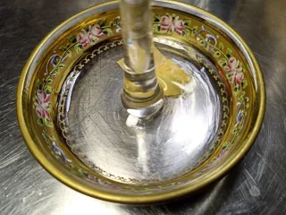 Centrotavola antico cristallo. Bordo in argento.