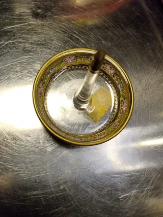 Elegante porta anelli Pauly&Co con decorazioni floreali. - Bordo dorato con motivi floreali e arabeschi. - Finitura interna in argento. - Base rotonda.
