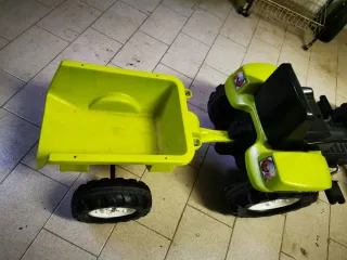 Trattore giocattolo a pedali con rimorchio, ideale per i più piccoli. - Colore verde brillante. - Sedile nero. - Volante nero con clacson rosso. - Rimorchio agganciabile.
