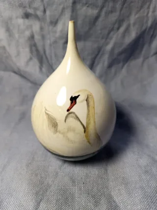 Piccolo vaso porcellana con cigno dipinto