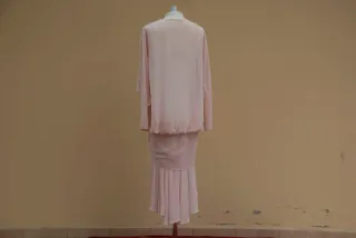 Elegante abito ispirato allo stile degli anni '20 e '30, con un design che ricorda le creazioni di Ertè. Un pezzo unico per un look sofisticato. - Design asimmetrico con dettagli a contrasto. - Tessuto fluido e lucido. - Chiusura con fiocco in vita. - Collo ampio e drappeggiato.