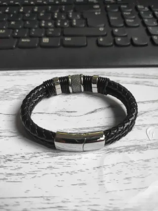 Elegante bracciale da uomo con clip in acciaio. - Design in pelle intrecciata. - Dettagli in acciaio. - Chiusura a clip magnetiche