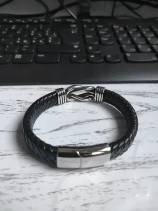 Bracciale uomo in cuoio+ pietre dure nuovo con chiusura metallica ad incastro e magnetica.
