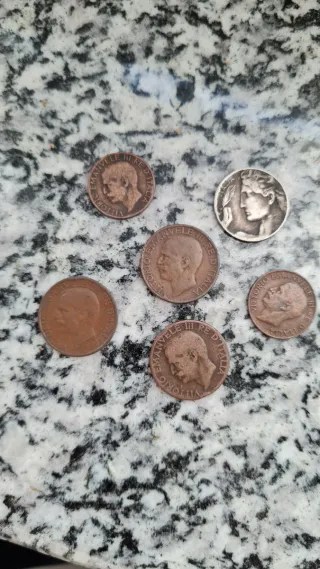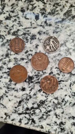 Lotto composto da sei monete italiane coniate negli anni 1921-23 - Monete in rame e argento. - Dettagli storici e iconografici. - Ideali per collezionisti.