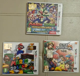Tre giochi per Nintendo 3DS perfettamente funzionanti - Mario & Luigi: Superstar Saga + Scagnozzi di Bowser - Super Mario 3D Land (senza istruzioni) - Super Smash Bros. for Nintendo 3DS (senza istruzioni)