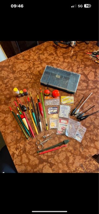 Set completo per la pesca sportiva, ideale per gli appassionati. - Galleggianti di varie forme e colori. - Scatola porta accessori. - Piccoli attrezzi inclusi.