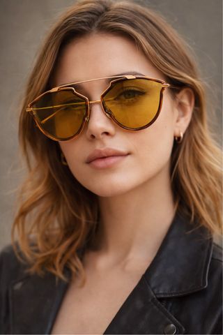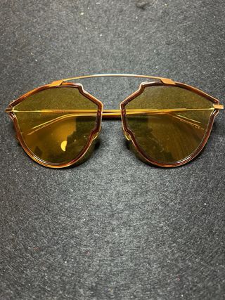 Occhiali da sole Dior con montatura color oro e lenti gialle. - Design moderno e audace. - Montatura in metallo e acetato. - Lenti con protezione UV.