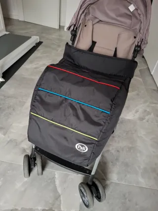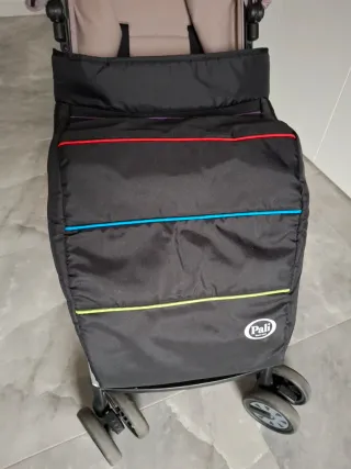 Coprigambe originale per passeggino Pali, modello 3.9. Protegge il bambino dal freddo e dal vento. - Colore nero con dettagli colorati. - Logo Pali visibile.