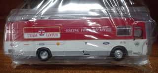 Modellino del transporter Team Lotus del 1967 in scala 1/43. - Dettagli Racing for Britain. - Livrea rossa e bianca. - Logo Ford presente.