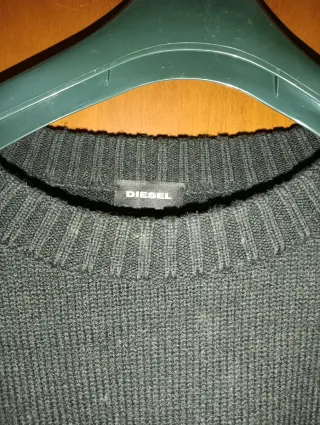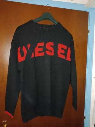 Maglioncino girocollo con logo Diesel. - Colore principale nero. - Scritta Diesel a contrasto in rosso sul davanti. - Polsini e fondo a costine.