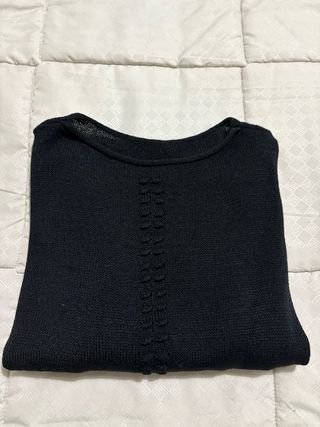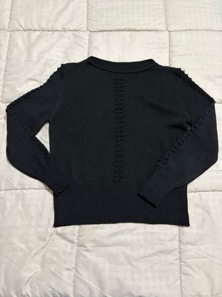 Maglioncino nero con un dettaglio particolare sul davanti. Tessuto a maglia. - Girocollo. - Maniche lunghe. - Dettaglio centrale a rilievo.