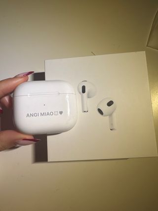 Custodia per Airpods di terza generazione con incisione personalizzata ANGI MIAO e un piccolo gatto e cuore. ( cavo di carica non presente ) - Custodia per Airpods 3ª generazione. - Incisione personalizzata.