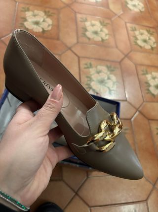 kiss&kriss Scarpe Tacco Basso Punta Catena Oro