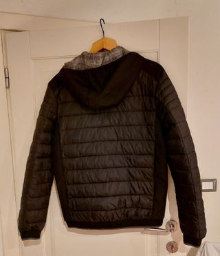 Giacca imbottita con cappuccio e fodera a quadri.