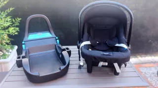Seggiolino auto Chicco di colore nero, completo di base. - Tessuto imbottito per il comfort del bambino. - Cappottina parasole integrata. - Maniglia ergonomica per il trasporto.