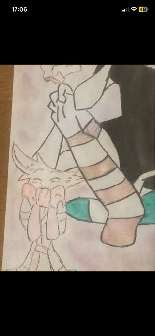 Disegno originale fatto a mano del personaggio Angel Dust. - Illustrazione a tema cartone animato. - Tecnica mista con matite colorate.