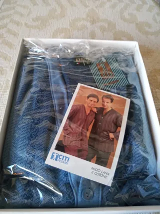 Pigiama da uomo CITI, un capo confortevole e caldo. - Realizzato in misto lana e cotone. - Modello cardigan. - nuovo