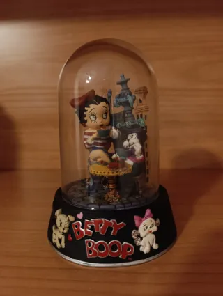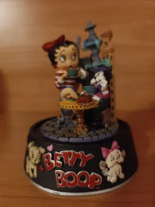 Statuina di Betty Boop. È alta circa cm. 17,5. È un carillon. Le gambe sono danneggiate ed il boa è stato incollato.