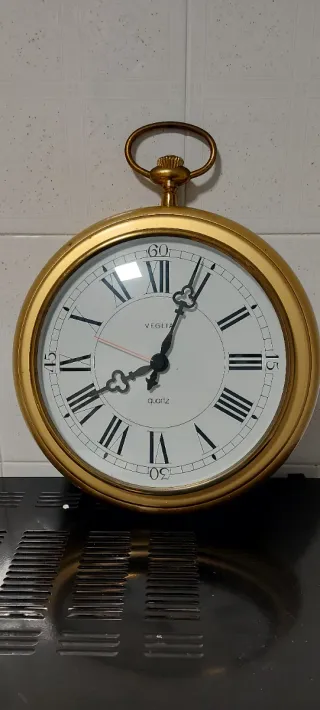 Elegante orologio da parete Veglia in stile classico.in metallo e vetro - Cornice dorata. - Quadrante bianco con numeri romani. - Lancette decorative.