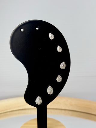 Elegante set di orecchini a forma di goccia, impreziositi da zirconi scintillanti. - Design a forma di goccia. - Incastonatura di zirconi. - Montatura in metallo color argento.