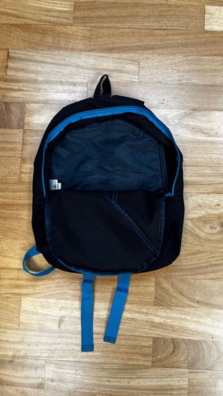 Vendo zaino Adidas originale, colore nero con dettagli azzurro e logo frontale. Ha uno scomparto principale con zip, spallacci regolabili imbottiti e maniglia superiore, tessuto esterno in 100% poliestere. Lo zaino è in ottime condizioni, senza strappi. Prezzo trattabile; per altre foto o misure scrivimi pure in chat.