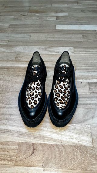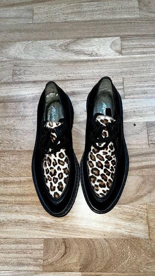 Vendo scarpe donna Alfredo Giantin originali, modello stringata in pelle nera con inserto anteriore maculato effetto pony e suola leggera Extralight, numero 38,5. Calzatura artigianale made in Italy. Le scarpe sono in ottime condizioni generali: pelle esterna ben tenuta, suola praticamente non consumata perché praticamente mai utilizzate. Prezzo trattabile; per altre foto o misure scrivimi pure in chat.