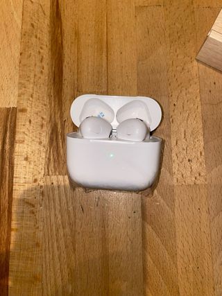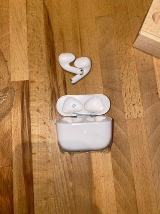 Cuffie wireless di colore bianco, perfette per l'ascolto di musica e per le chiamate. - Design ergonomico per un comfort ottimale. - Custodia di ricarica inclusa.