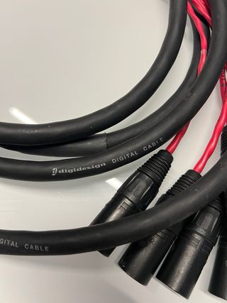Cavo digitale Digidesign con connettore Sub D e 5 uscite XLR maschio. - Lunghezza: 3.70 metri. - Colore cavo principale: nero. - Colore guaina connettori: nero. - Colore guaina separazione cavi: rosso.
