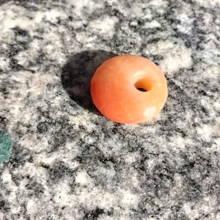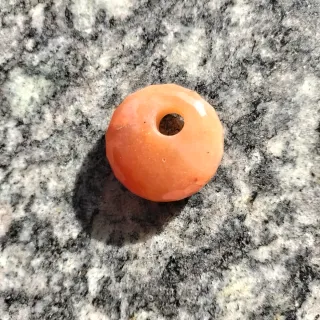 Delizioso ciondolo a forma di disco con foro centrale, realizzato in corniola. - Pietra naturale con sfumature che vanno dall'arancione al rosa. - Forma a disco con foro centrale per infilare cordini o catenelle.